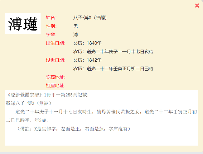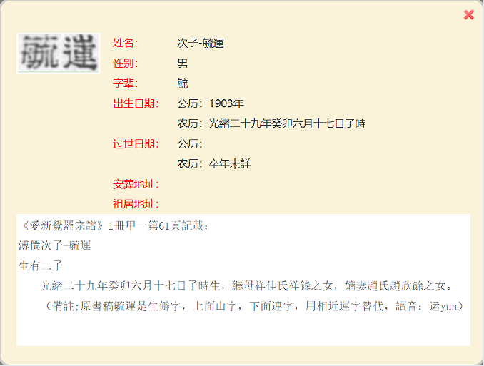 7、清高宗纯皇帝(乾隆)位下皇十一子永瑆後裔載鉹長子(166页)