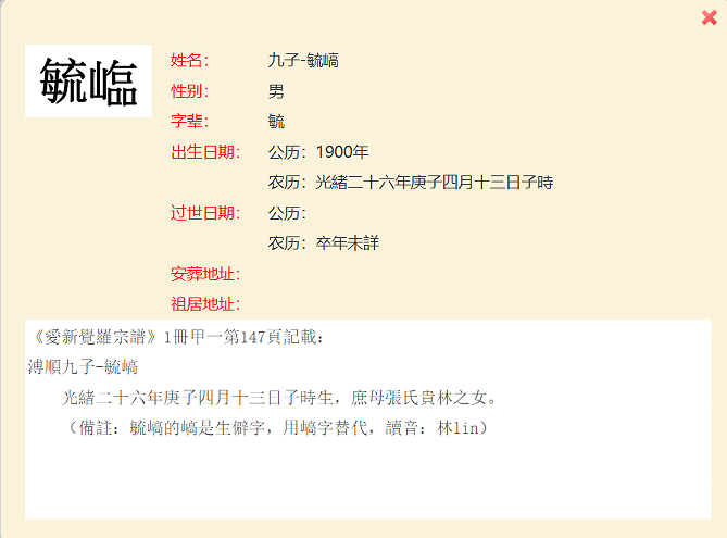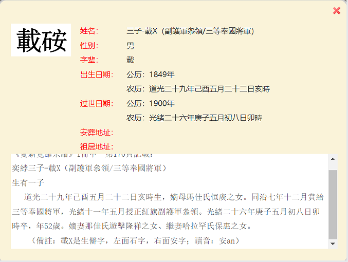 7、清高宗纯皇帝(乾隆)位下皇十一子永瑆後裔載鉹長子(166页)