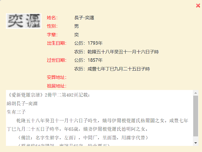 22、淸聖祖仁皇帝(康熙)位下皇十五子允祐后裔奕梁次子(750页)