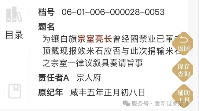 中国第一历史档案馆所藏咸丰五年(1855年)八月宗人府奏折提供了重要佐证。该奏折记载:“为镶白旗宗室亮长曾经圈禁,业也革去顶戴现报销米石应否与此次捐输米石之宗室一律议叙具奏请旨事。”这一档案明确显示: