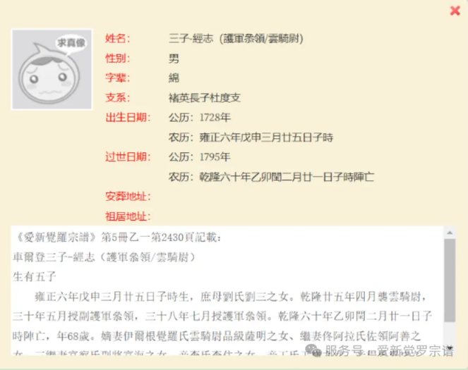 (5)阵亡高龄:车尔登(54岁)、经志(68岁)父子均在战场阵亡,五、六十岁高龄战场阵亡在清代较为少见。