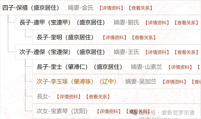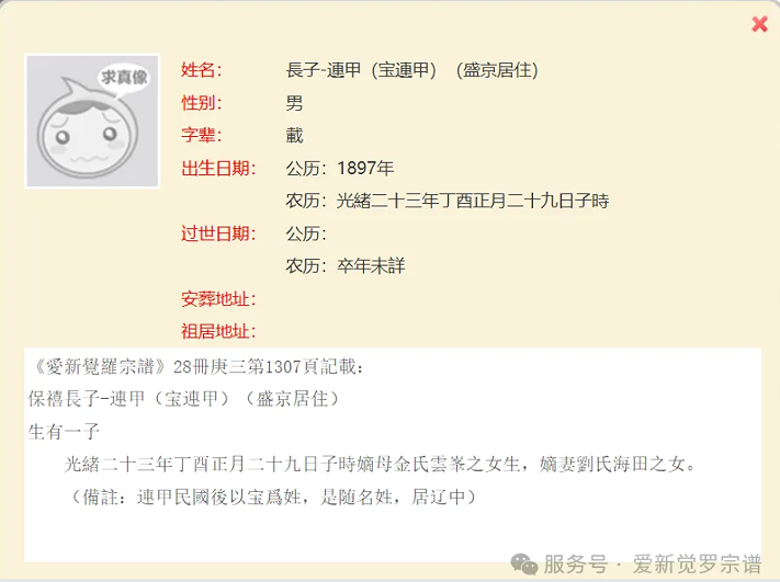 在爱新觉罗家族有一支以“宝”为姓的家族,是兴祖直皇帝位下第五子包朗阿的后裔,在半个世纪前提起辽中刘二堡老“宝”家,方圆几十里几乎是无人不知,无人不晓。这一支宝姓具体出自密雅纳第十三子爱必达支,爱必达第五子额尔金支的奕字辈几乎都以保或宝字取名,因此这些由几十人组成的以宝字取名的同辈兄弟,被当地人称为宝家。现在这个家族保禧的后人仍然以宝为姓,是地地道道的随名姓,只是把“保”字变成了“宝”字。远在台湾的金溥聪先生就是出自辽中刘二堡的宝家,他的祖父宝珖,父亲宝大成(又名金铄)。如今的“宝”姓的先人都已故去,后代们把姓氏又回归到祖姓“肇”姓、“金”姓,但是“宝”姓是过去的漫长岁月里这个家族实实在在曾经存在过的,这一变迁成为这一家族的显著特点。