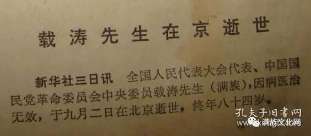 1970年9月2日,当时担任全国人大代表、国民党革命委员会中央委员的载涛先生去世,新华社在次日即9月3日发了消息。